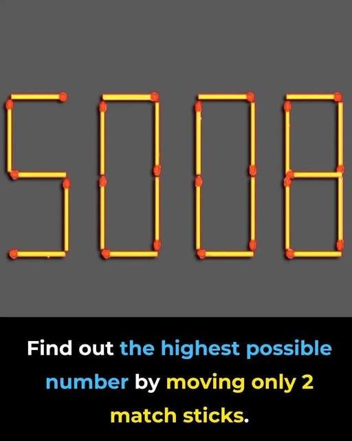 âMove exactly two matchsticks to form the highest possible number.â