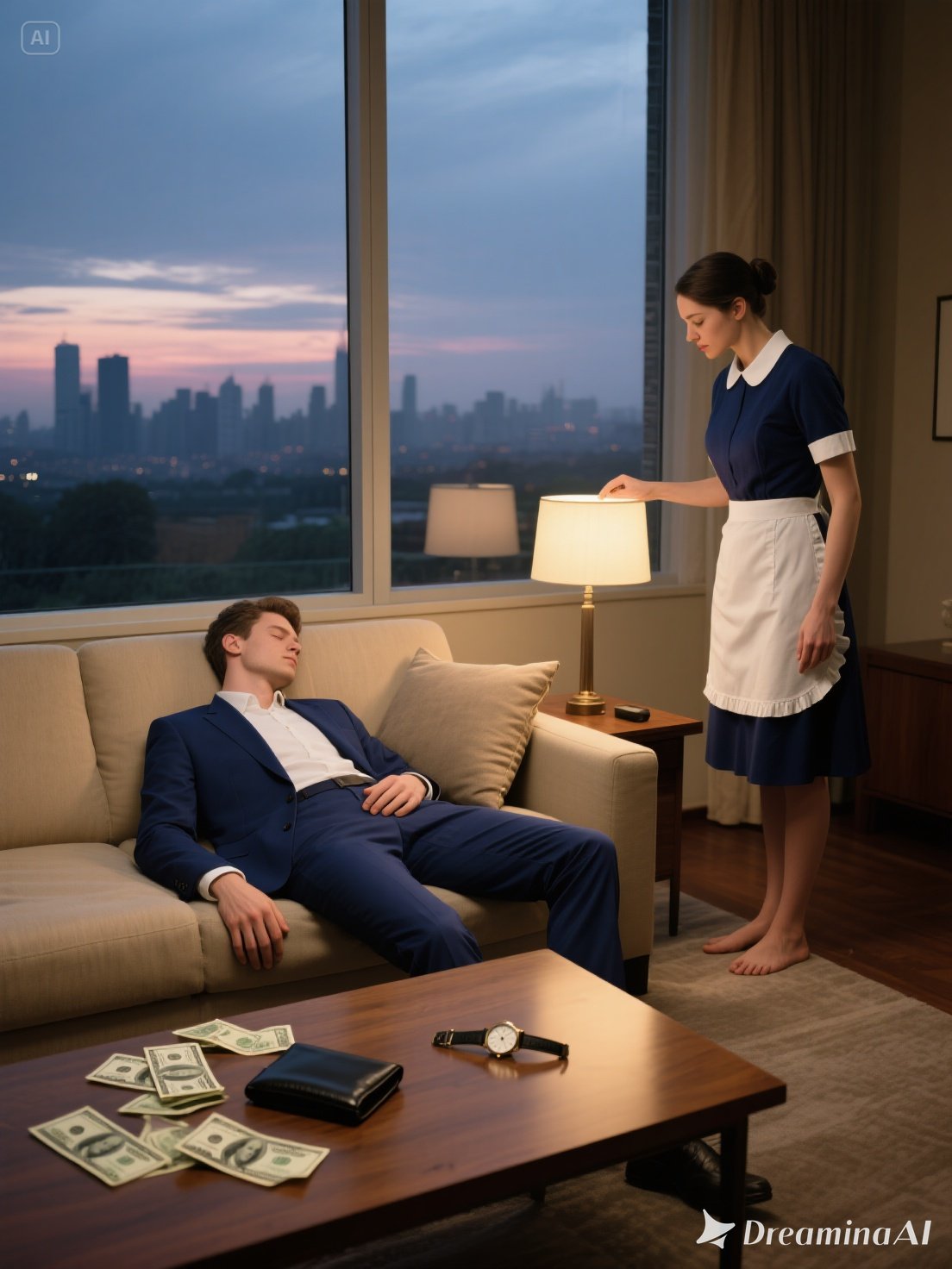 That evening, he pretended to sleep on the living room sofa. On the table beside him: his most expensive gold watch, an open wallet, and a pile of cash. Lucía arrived at ten, barefoot, hair tied back, holding a small lamp. She moved quietly, afraid to disturb the silence.